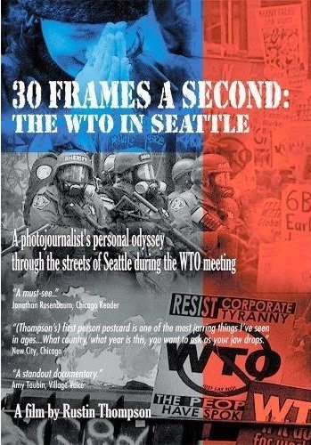 "30 Frames A Second: The WTO in Seattle, is a compelling first-person account of the events that unfolded during the week the World Trade Organization came to Seattle in November of 1999. It's told from the perspective of 15-year veteran network news cameraman Rustin Thompson, who covered the WTO as an independent journalist. It is the story of how Thompson's objective point-of-view evolved into a subjective account of what became an unscheduled, unruly outbreak of democracy.
